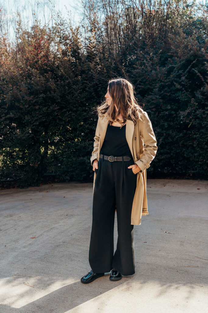 Loafers are always a classic, but in 2025 they’re everywhere. They work almost year-round and can be dressed up or down effortlessly. The Sheen from Shapen is their patent leather loafer, available in a few variations. I’m wearing the studded version here, which adds a fun, slightly edgy touch.